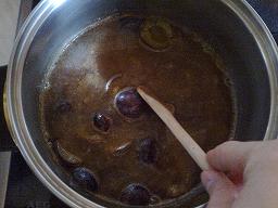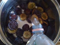 A szilvákat betesszük a fazékba.