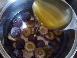 A szilvákat kimagozzuk, félbe vágjuk.