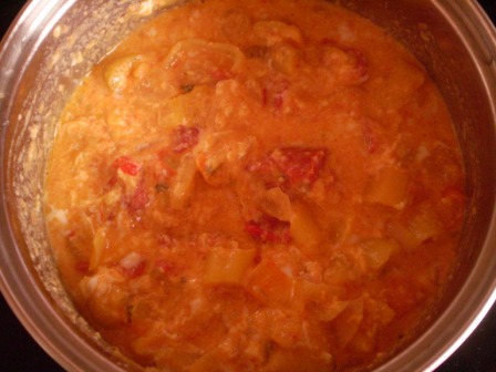 8) A hagymát, paprikát, paradicsomot főzd 15 percig.