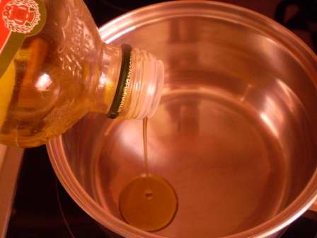 4) A 3 evőkanál olajat öntsd a fazékba.